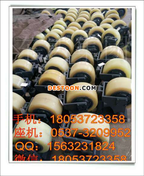 聚氨酯滚轮罐耳采用先进的密封技术,适应淋水、煤尘等恶劣环境。轮头安装采用三锁紧结构,彻底避免掉轮头事故的发生。滚轮采用四氢呋喃-环氧丙烷共聚醚型聚氨酯浇注,具有高弹性、耐撕裂、抗水性、抗油性的优点。滚轮磨损补偿调节采用左、右旋螺杆,调节迅速便捷。机座、摆架采用优质钢板焊接成型,体积小、重量轻,安装轻便。、聚氨酯滚轮罐耳材质耐磨东达机电生产