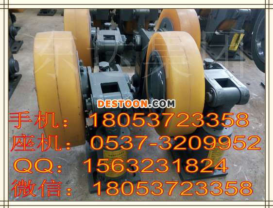 单轮滚轮罐耳采用先进的密封技术,适应淋水、煤尘等恶劣环境。单轮滚轮罐耳轮头安装采用三锁紧结构,彻底避免掉轮头事故的发生。滚轮采用四氢呋喃-环氧丙烷共聚醚型聚氨酯浇注,具有高弹性、耐撕裂、抗水性、抗油性的优点。滚轮磨损补偿调节采用左、右旋螺杆,调节迅速便捷。单轮滚轮罐耳机座、摆架采用优质钢板焊接成型,单轮滚轮罐耳体积小、重量轻,安装轻便。单轮滚轮罐耳研发,滚轮罐耳厂家直销