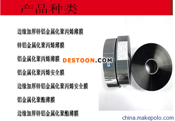 在薄膜表面上蒸镀一层很薄的锌、铝金属层,可以得到自愈性优异的锌铝金属化电容器用薄膜。金属化薄膜的最大特点是具有自愈性,即当某处击穿时,短路电流使击穿部位周围的金属膜熔化并蒸发而又恢复绝缘性能,因此显著减少纸或薄膜中贯穿性导电疵点和弱点对击穿强度的影响,从而提高工作场强。金属层的厚度一般为5nm~50nm。国际上金属层的厚度可达到1nm~500nm,但从耐热性方面来看,优先1nm~100nm,从电特性方面来看,更优先5nm~50nm。在相同蒸镀金属的条件下,镀层厚度δ越大,方阻值(Ω/□)越小,电阻R也就越小,承载的电流就越大,但自愈性能变差。锌铝金属化膜采用边缘加厚蒸镀法,大大降低了薄膜电容器的喷金层和芯子的接触电阻,提高了电容器的品质。