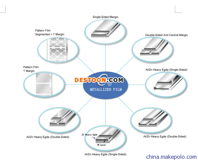 在薄膜表面上蒸镀一层很薄的锌、铝金属层,可以得到自愈性优异的锌铝金属化电容器用薄膜。金属化薄膜的最大特点是具有自愈性,即当某处击穿时,短路电流使击穿部位周围的金属膜熔化并蒸发而又恢复绝缘性能,因此显著减少纸或薄膜中贯穿性导电疵点和弱点对击穿强度的影响,从而提高工作场强。金属层的厚度一般为5nm~50nm。国际上金属层的厚度可达到1nm~500nm,但从耐热性方面来看,优先1nm~100nm,从电特性方面来看,更优先5nm~50nm。在相同蒸镀金属的条件下,镀层厚度δ越大,方阻值(Ω/□)越小,电阻R也就越小,承载的电流就越大,但自愈性能变差。锌铝金属化膜采用边缘加厚蒸镀法,大大降低了薄膜电容器的喷金层和芯子的接触电阻,提高了电容器的品质。