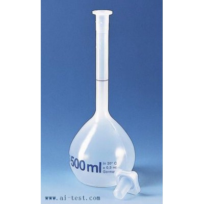 A4000366:容量瓶,PP材质,500 ml,NS 19/26,PP瓶塞 |