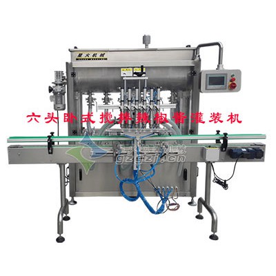 豆豉酱灌装机/酱类调料灌装机-广州酱料灌装机是星火机械根据市场的发展需要以及应广大客户的需求而打造的全新酱体灌装机设备,该灌装机拥有六个同步注脂灌装头,可均匀地被挤压灌装到容器里,为企业的生产灌装增加了不少的便利,同时也提升了产品的灌装效率,为企业增进更多的效益。豆豉酱灌装机/酱类调料灌装机-广州酱料灌装机是采用韩国光眼装置,LG韩国PLC、法国电器元件,可连续自动运行灌装,无瓶不灌装,配置防滴漏装置。豆豉酱灌装机/酱类调料灌装机-广州酱料灌装机可根据客户需求配置酱料瓶真空旋盖、自动贴标、喷码等配套设备。此次星火针对有卧式搅拌、有适合生产线工作需求的6头、12头卧式搅拌酱料灌装机,大大提升了企业灌装包装方面的效率。