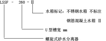 螺旋式砂水分离器由无轴螺旋、衬条、U型槽、水箱、导流板、出水堰和驱动装置组成。砂水混合物从分离器一端顶部输入水箱,混合液中重度较大的,如砂粒等将沉积于槽型底部,在螺旋的推动下,砂粒沿斜置的槽底提出升,离开液面后继续推移一段距离,在砂粒充分脱水后经排砂口卸至盛砂桶,而与砂水分离后的水从溢流口排出并送往厂内进水池。
