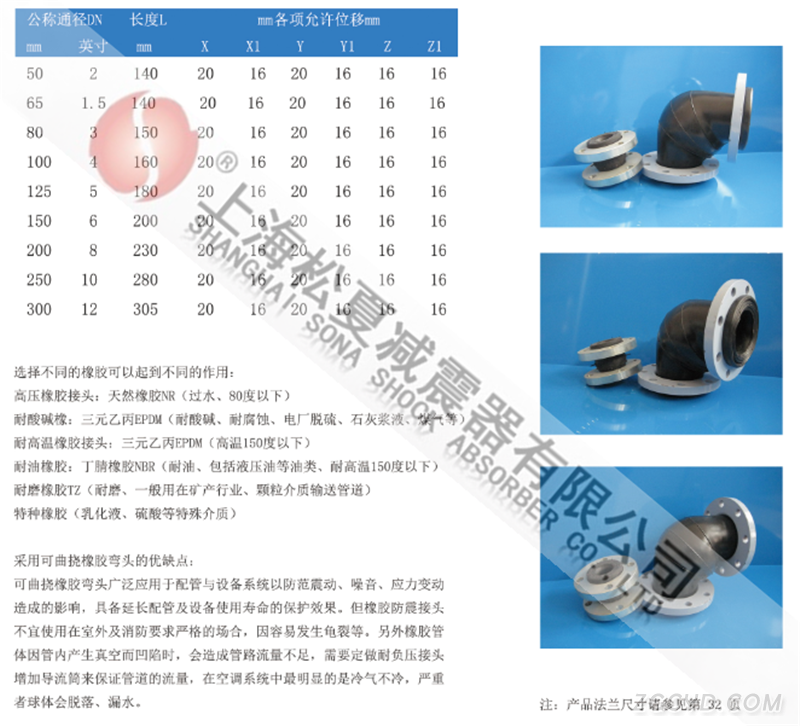 由于可曲挠橡胶弯头具有良好的综合性能,所以它广泛用于化工、建筑、给水、排水、石油、轻重工业、冷