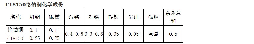 其主要牌号有;CuCrlZrASTM C18150 C18200