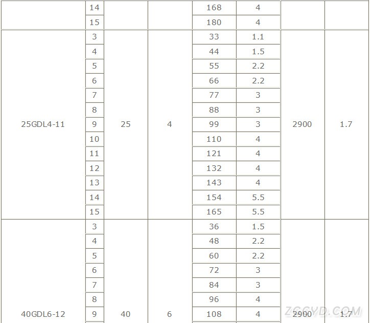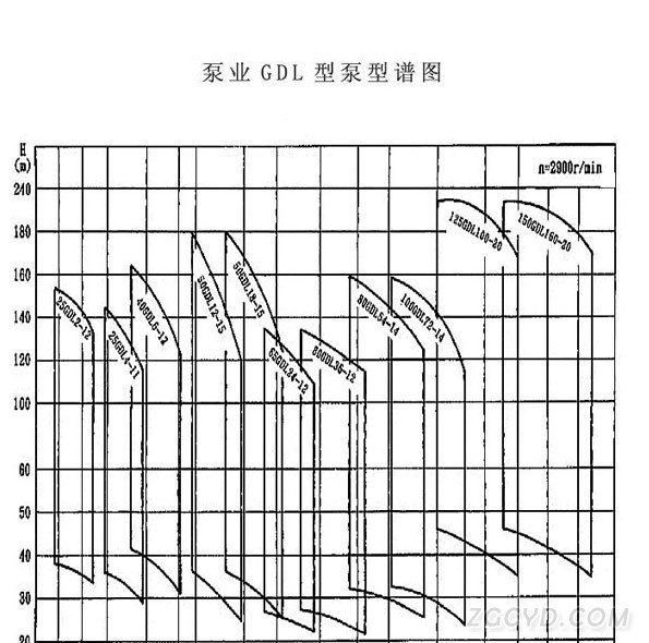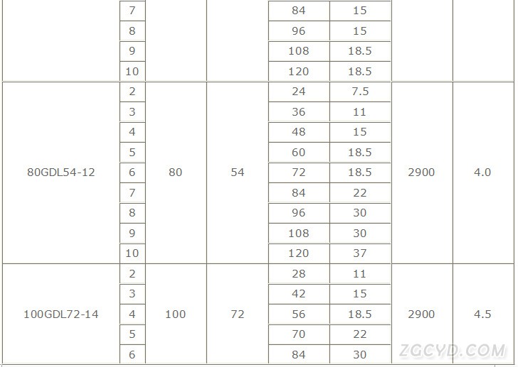 GDL型立式多级管道离心泵水泵吸入、排出口位于同一直线上。转子部件由轴、叶轮、叶轮挡套、轴套等零件组成,进水段、中段、出水段用拉紧螺栓联结。