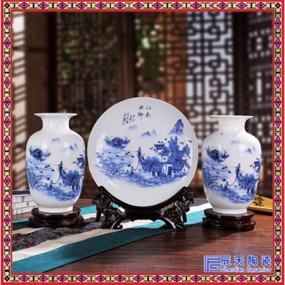 陶瓷艺术品的分类很多种,有瓷盘,有花瓶,也有造型各式各样的摆挂件,陶艺品还可以随意进行组合从而生成一种独特的套装形式。景德镇陶艺三件套就是由不同造型的产品组合而成的。在家中摆放个性现代花瓶,给人不一样的视觉冲击,让您享受家享受温馨,更是体现房屋主人高雅品位的即使是作为工艺品,放在一处作为装饰,那也足够吸引客人的目光,尽显主人的独特魅力.陶瓷饰品现在越来越多的用于家居摆挂中,因为陶瓷产品不同其他材质产品,景德镇陶瓷产品本身是由高温烧制而成的,安全健康,而且陶瓷产品可以随意发挥,生产出自己想要的外观造型,绘制出自己想要的图案,经高温烧制后的产品,用不褪色,利于长久保存。