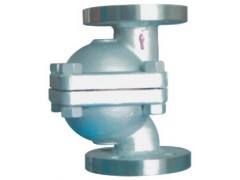 立式自由浮球式蒸汽疏水阀的结构简单,内部只有一个精细研磨的不锈钢空心浮球,既是浮子又是启闭件,无易损零件,使用寿命很长。装置刚起动时,管道内出现空气和低温冷凝水,双金属自动排空气元件把浮球推离阀座,阀门打开,排除不凝结气体,低温冷凝水流进疏水阀,浮球上升,凝结水迅速排放。装置很快提升温度,管道内温度上升到饱和温度之前,双金属自动排空气元件感温变型伸直;蒸汽疏水阀进入正常运行状况,浮球随液位升降调节阀孔流量;当凝结水停止进入时,浮球随介质流向逼近阀座,关闭阀门。立式自由浮球式蒸汽疏水阀的阀座总处于液位以下,形成水封,无蒸汽泄漏
