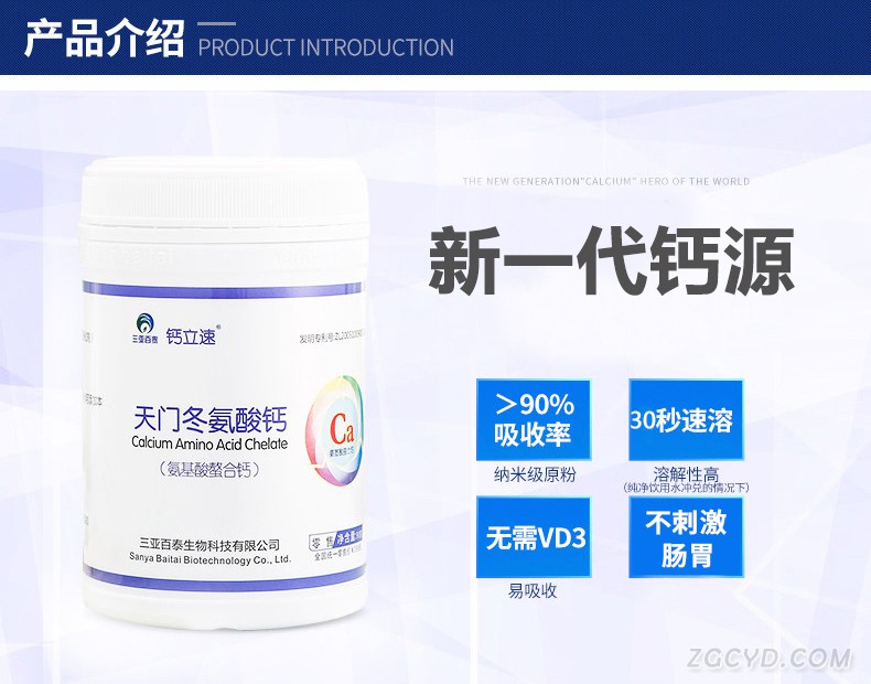 天门冬氨酸钙是第三代钙源,是传统钙3倍的吸收率,3秒速溶,溶解性高,无需维生素D3辅助吸收,吸收率高达95%,温和不伤胃,纳米级纯原粉。
