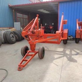 电缆拖车,又称为电缆放线车,有双稳机型,简易型,为保障使用安全,产品完全使用飞机轮胎,并在前端装有连接连接配置,方便托运移动。规格:3T、5T、8T、10T、12T等(特殊规格可定做)用途:主要试用于电力电信施工工程装卸、运输、布放大型电缆线轴。操作方法;人工摇动电缆拖车绞车使后置为低限度处于装卸位置,把轴杠穿入线盘(我厂以配置轴杠)后,抽出电缆拖车的后置保险将轴杠推进后卡位。放下保险(钢钎)后,左右各一人摇动稳机手柄(人均手感力15公斤)使线盘升起后,受动稳机带有自动制动器可却保施工安全。托运方法:电缆拖车前端有一连接处可直接连接置汽车、拖拉机后面以便托运。