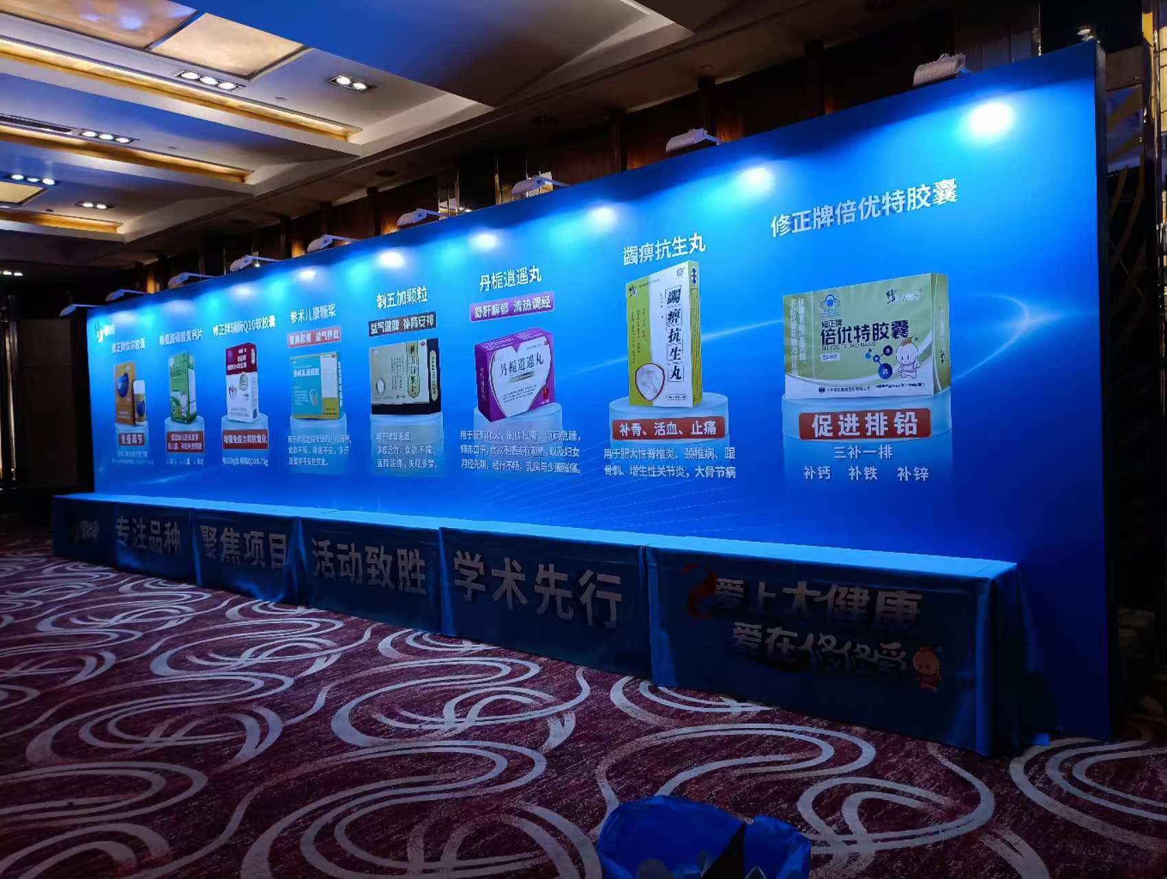 3, 活动背景非伸缩性快展背景板搭建:高饱和度纯布画面--高清,高饱和,亚面,宽幅,细腻。