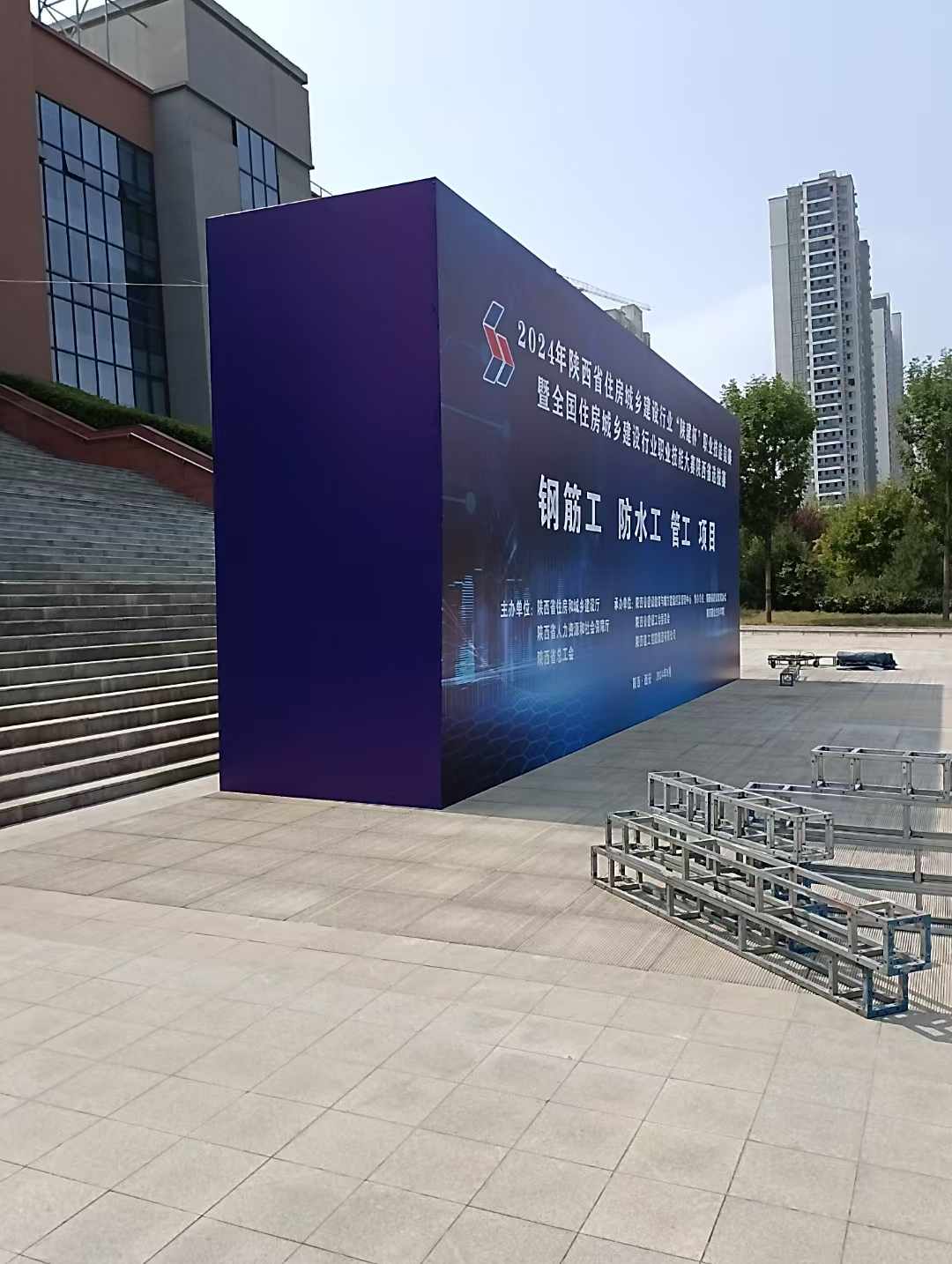 2, 活动背景拉网展架搭建:高清画面,高清展板画面,高清纯布画面