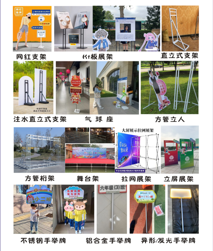 - kt 板展架:专为 kt 板设计,适配性强,安装简单快捷,无需复杂工具,几分钟内即可完成组装。展架结构合理,能牢牢固定 kt 板,避免出现松动、滑落等问题,同时可根据需求灵活调整展示角度,让宣传内容更易被观众关注。