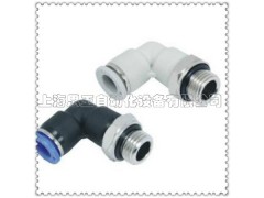 PLG系列通用快插L型螺纹弯头,G螺纹,可旋转360度,外螺纹,带外六角,本体金属以黄铜制成,表面镀镍。塑料体有黑色和灰白两种颜色供选择。使用条件:使用流体真空及压缩空气,使用压力:0.1-1.0Mpa,使用温度:-5-60度,