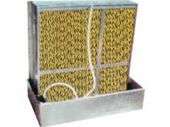 循环式湿膜加湿器的工作原理:利用湿膜材料进行加湿属于等焓洁净加湿,其工作过程是洁净的自来水通过进水管路进入循环水箱中,通过浮球阀控制水位;当加湿器工作时,循环水泵将水箱中的水输送到加湿器顶部的淋水器,淋水器确保水均匀分配到湿膜材料上,水从湿膜材料顶部向下渗透,同时被湿膜材料吸收,形成均匀的水膜。当干燥的空气通过加湿器时,一部分水与空气接触汽化、蒸发,使空气湿润(即湿度增加)达到加湿目的;没有蒸发的水从加湿器低部流回循环水箱,循环水箱中的水通过循环水泵反复循环使用。 当循环水箱中的水位有所下降时,进水开关开启,给水箱补水,确保水箱的水位维持在设定的高度范围;当循环水箱中的水位下降到一定高度时,水箱内的低水位传感器工作,确保循环水泵在缺水的情况下停止运转。当循环水箱内的水循环一定时期后,通过水箱的排水口将水排出,清洗水箱,置换干净的水,保证循环水和被加湿的空气不被二次污染。