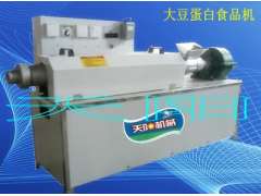 天阳植物蛋白肉机(牛排机,素鸡翅机)是在先进设备的基础上研制的植物蛋白加工设备,该设备以冷榨豆粕为主要原料,经粉磨、搅拌、调质、高温、高压,将大豆蛋白打开成链状并重新组织化,形成筒状,片状或异型的蛋白肉食品,具有肉的状态和口感,不含胆固醇和动物脂肪,具有吸油、吸水、吸味的特点,广泛用于各类行业。有以下特点:1、大豆蛋白经膨化装置膨化,其蛋白质分子重新排列,具有同方向组织结构,类似肉样的多孔组织,因此有优良的保水性与咀嚼感;2、大豆蛋白在短时高温、高压力下加工,消除了大豆中所含的各种有害物质(胰蛋白酶抑制素、尿素酶、皂素以及血球凝聚素等),提高人体对蛋白的吸收消化能力,营养价值显著增加;3、膨化时,由于出口处迅速减压喷爆,可以除去大豆中的不良气味并降低大豆蛋白质食用后的产气性;4、大豆蛋白肉有良好的保油性,用它做出食品干净,不油腻;5、使用方便,用室温水浸泡30分钟,便可添加做成各种食品,对人体十分有益,老少皆宜,食用方便,是各种涮锅、火锅、砂锅、牛羊杂汤和多种麻辣烫的主要配料,可凉拌、热炒、炖菜(肉),加入调料也加工成五香、麻辣等具有鲜明地方风味的即食产品,市场需求量大。天阳植物蛋白肉机采用数显温控装置,自动加温,通过专用减速机带动螺旋挤压喷爆器使蛋白质受热变性挤出成型,目前推广的天阳豆皮机有两种: TYN-A型时产60-80公斤,适配动力2.2KW,价格4260元(畅销),TYN-B型时产80-100公斤,适配动4.5KW,价格5800元。内外加热自动成型羊肚丝机7250元。另可根据自己情况配备拌面机1280元,自动下料器2580元,切丝机2980元。
